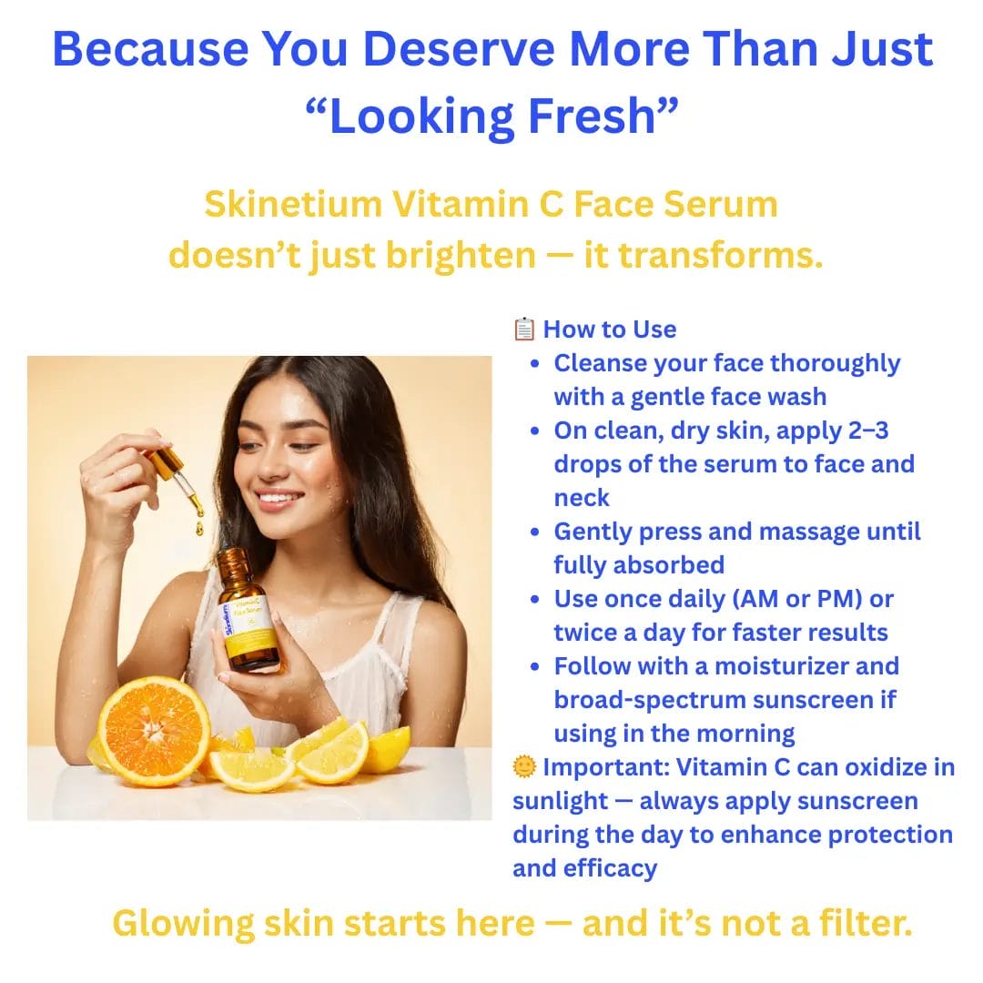 - Apply 2–3 drops of serum to face and neck